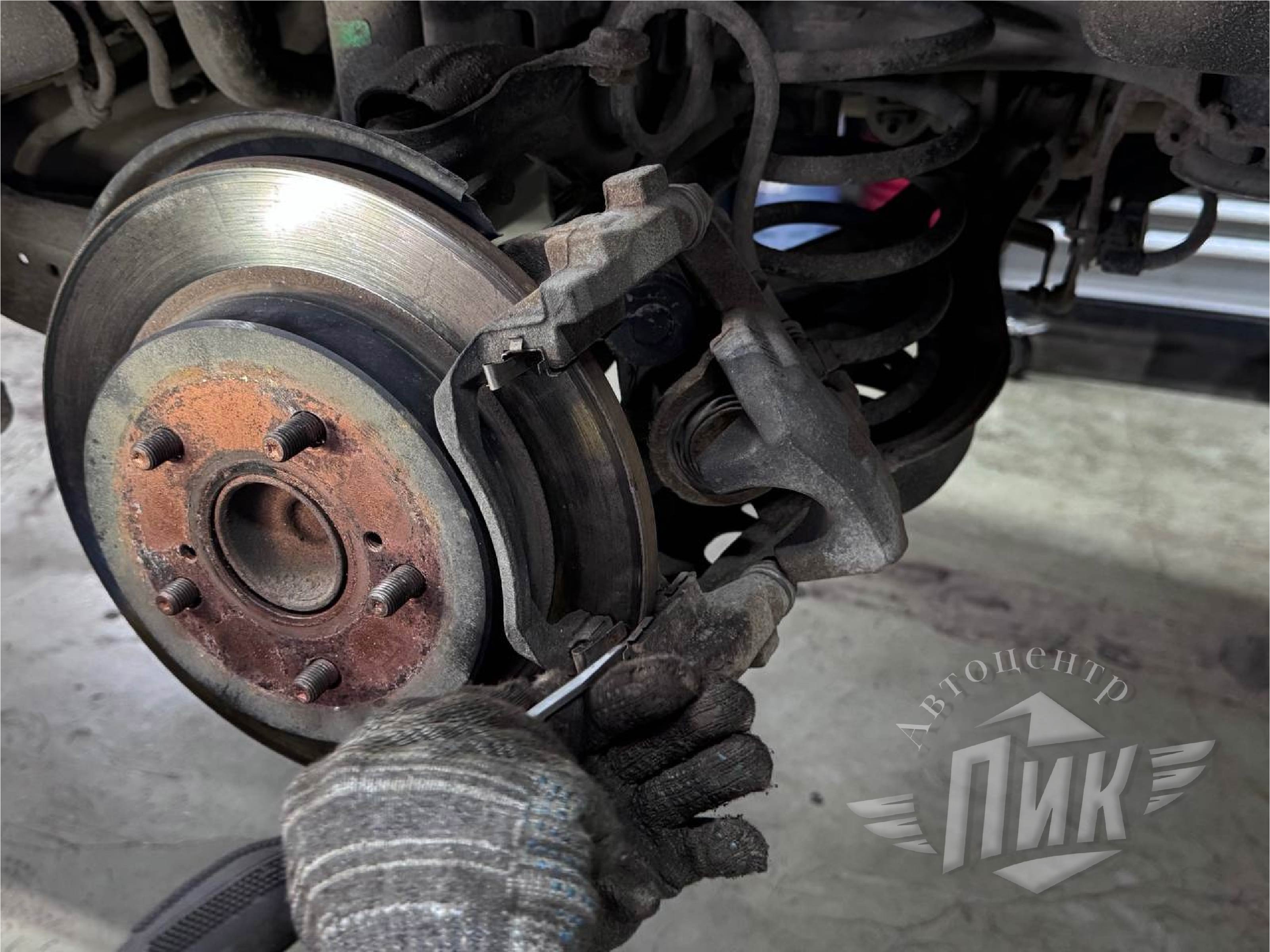К нам в автосервис ПИК обратился клиент с автомобилем Toyota Camry в 70-м кузове с жалобой на глухие стуки в передней части автомобиля при проезде мелких неровностей. Автомобиль 2018-го года выпуска с пробегом 179 000 км. Было выявлен люфт шаровых соединений передних стоек и износ резиновых втулок крепления переднего стабилизатора.